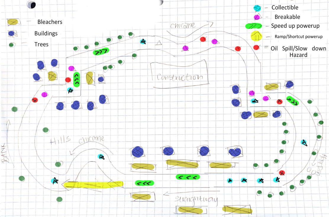 To create realistic racetrack, I made sure to put hairpins, banks, chicanes and straightways on the track.